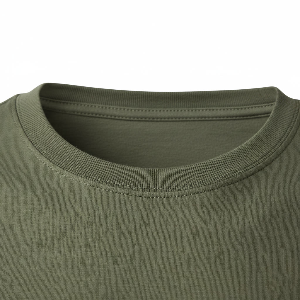 - Wzmocniony okrągły dekolt z podwójnym ściągaczem